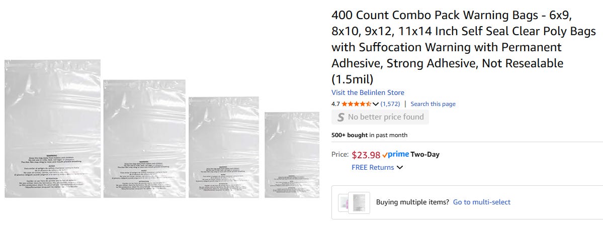 Depending on what types of items you end up selling, you may not need polybags at all but it’s important to have some on hand just in case.