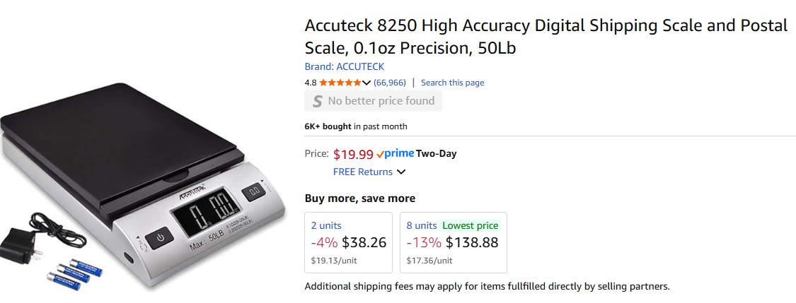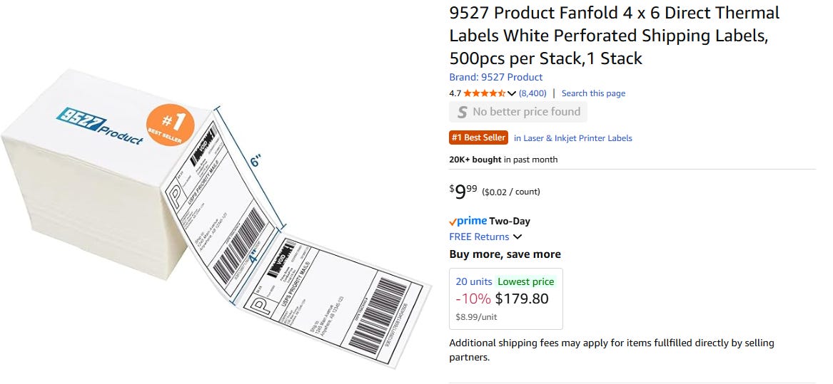 For individual FBM orders where you’re shipping directly to the customer, I like this smaller one: