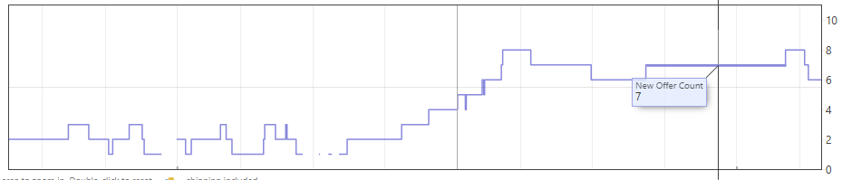 Below the main Keepa chart that shows sales rank and price, there is a secondary chart that shows the offer count.