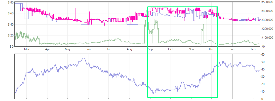 As indicated by the green rectangle, the demand and prices are the highest from September-December when temperatures start to drop.