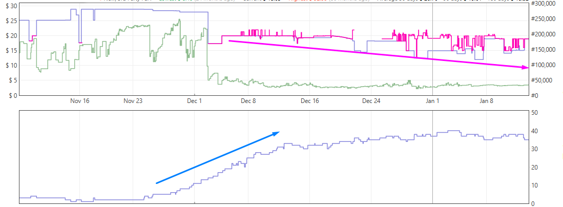 This one is a classic - seller count rapidly increases and the price quickly drops anywhere from 10-50% in a matter of days.