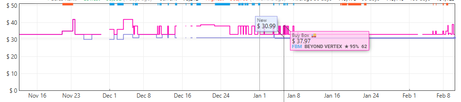 Notice how in the following image that the Buy Box price is almost always higher than the New price:
